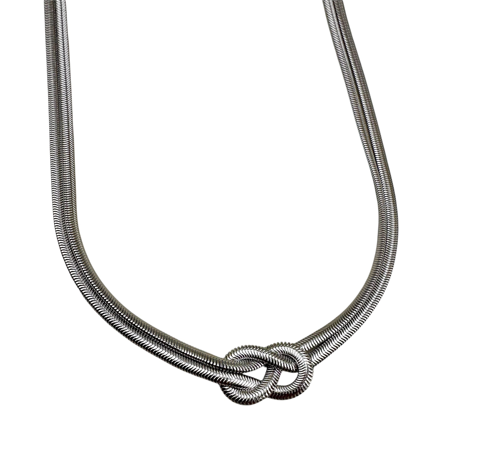 Il design a doppia catena, si unisce in un raffinato nodo centrale, simbolo di legame e raffinatezza. Perfetta da indossare ogni giorno o come dettaglio sofisticato per le occasioni speciali.