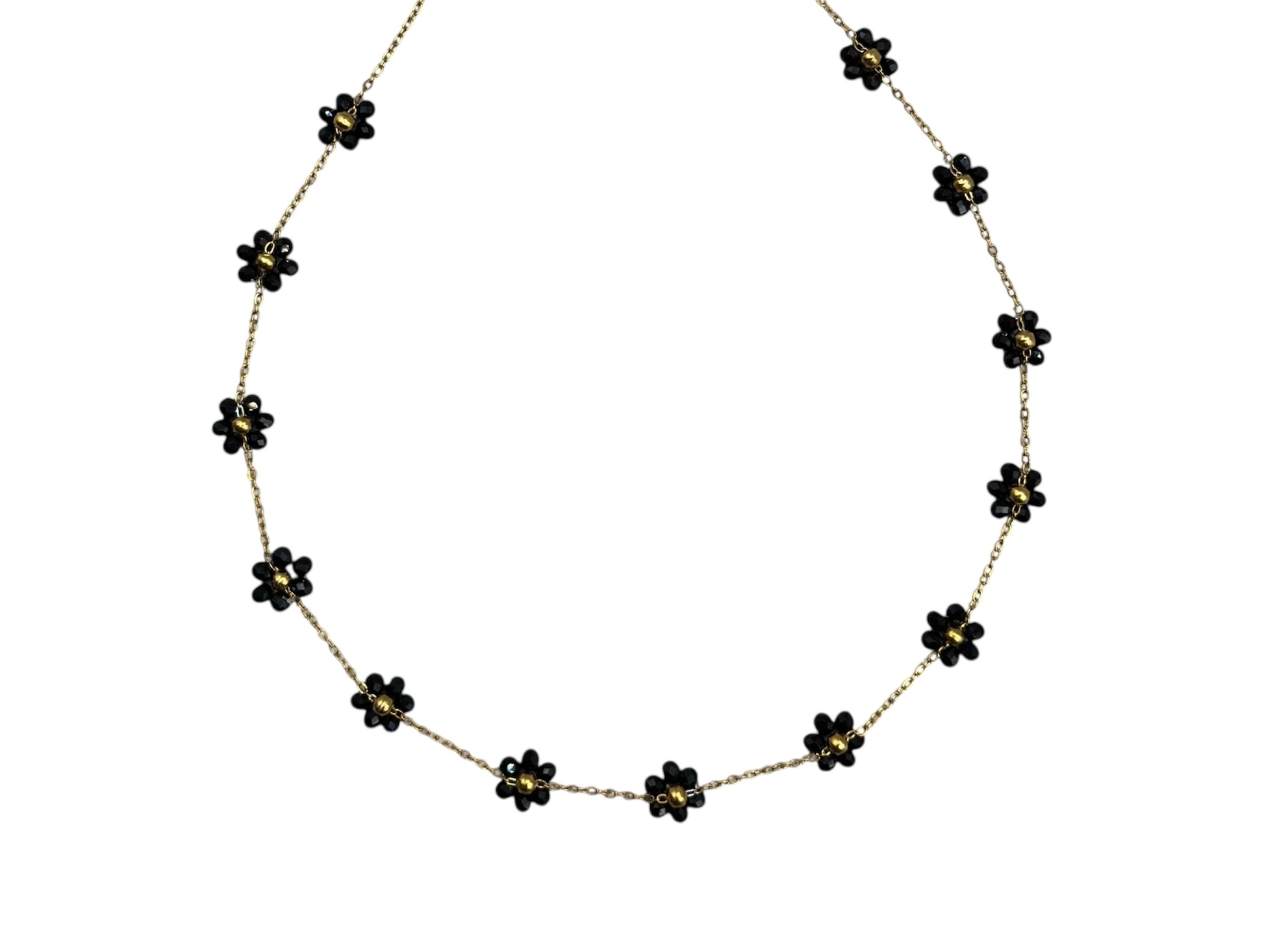 Collana in acciaio inox con fiori di perline, elegante e raffinata, questa collana è realizzata in acciaio inox dorato, resistente e anallergico.